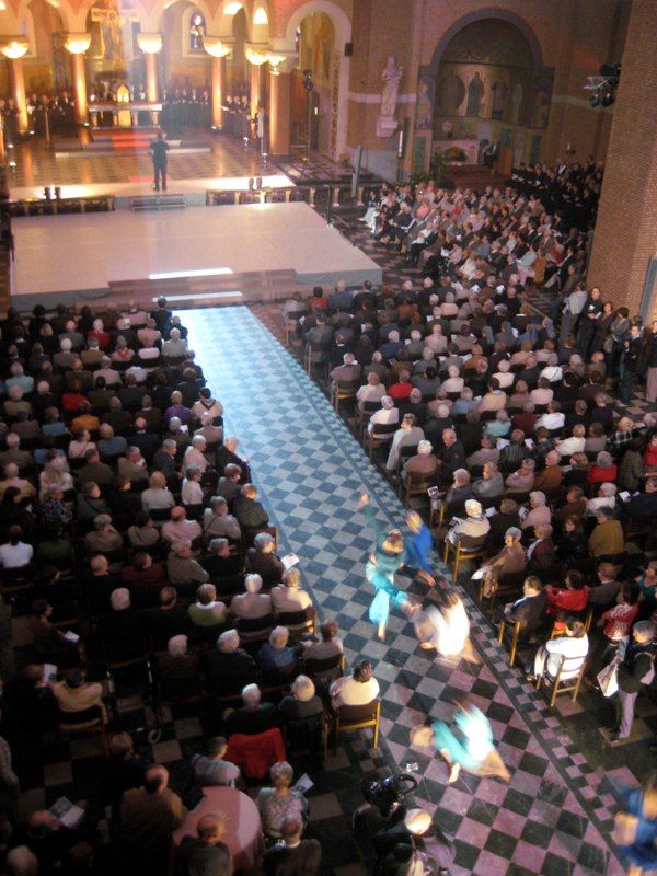 Voor de viering van het 75 jarig bestaan van de basiliek van Edegem werd een speciale feestviering met alle koren van de gemeente en de dansgroep Kinemusik in elkaar gestoken. De aandacht moest echter behouden blijven op de basiliek, een neobyzantijnse kerk met enkele prachtige fresco’s en een grote koepel boven het podium.