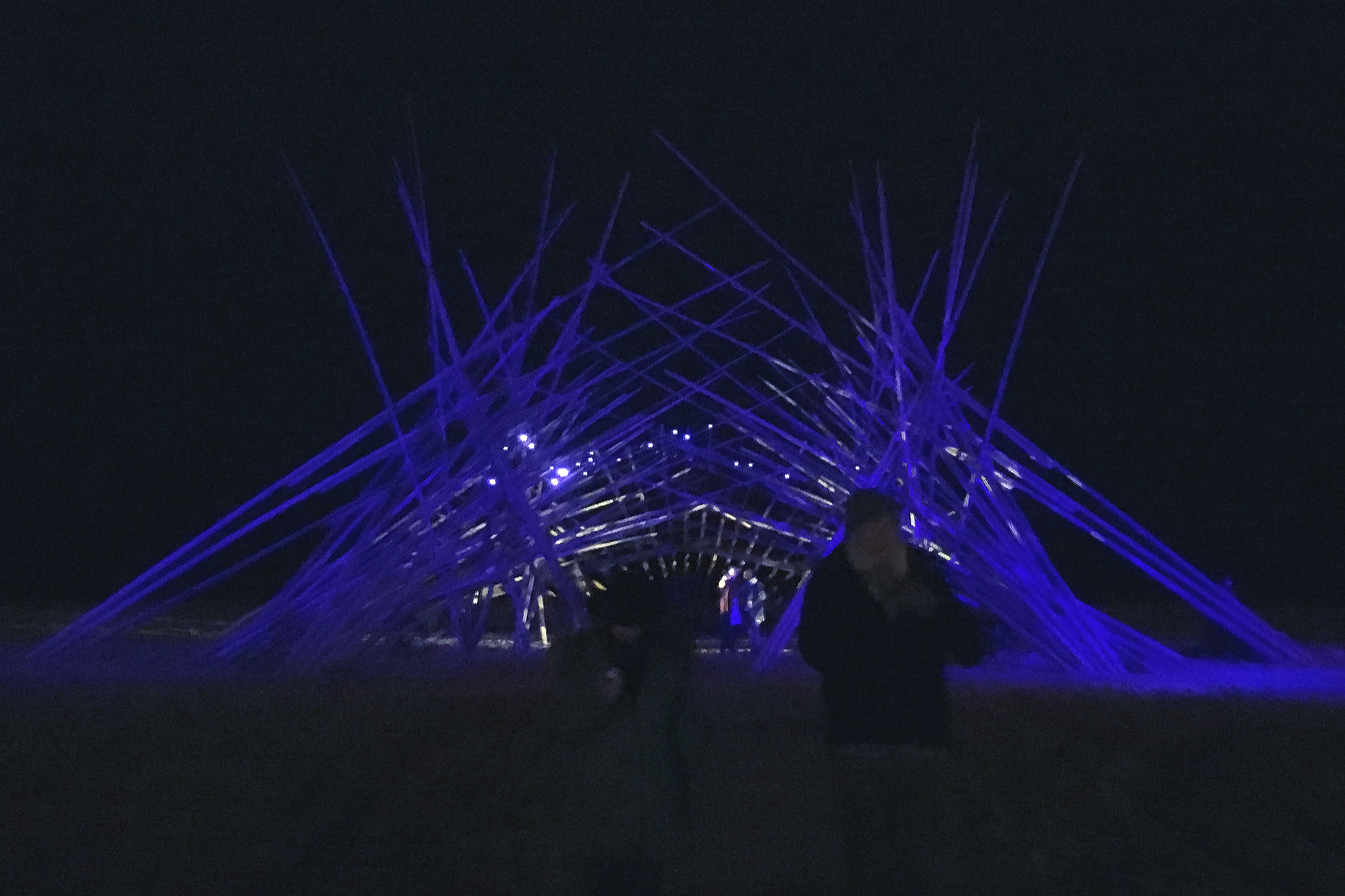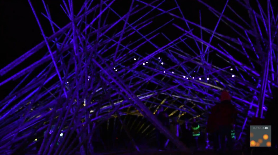 De bamboestrucuur wordt aan de buitenzijde in een diepe blauwe kleur belicht. Aan de binnenzijde scheren patronen zachtjes over de complexe bamboestructuur alsof ze ze stap voor stap willen ontdekken. De lichten geven slecht een tipje van de structuur bloot maar geven tegelijkertijd een complex patroon van voortshrijdende lichtblekken op de bamboepalen. Tussen de bamboe is een sterrenhemel opgehangen waar achtereenvolgens de 12 sterrenbeelden op worden geprojecteerd.